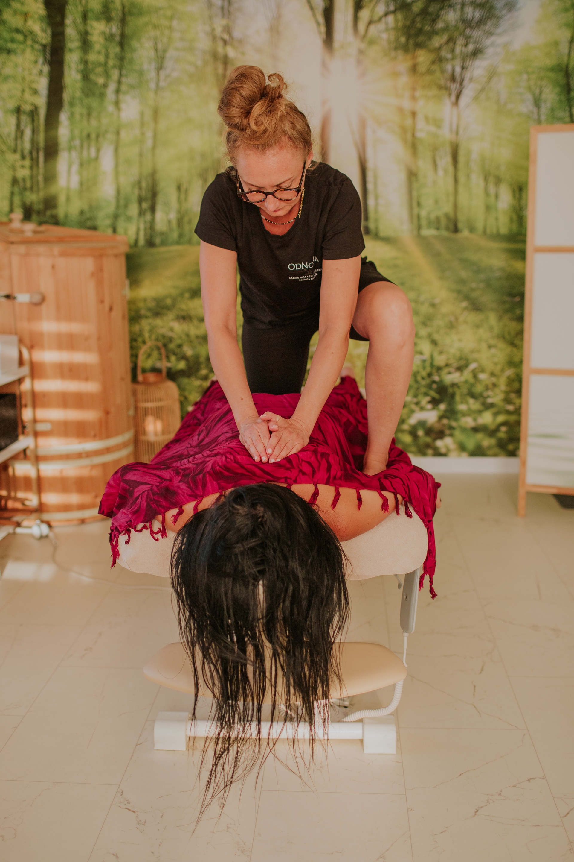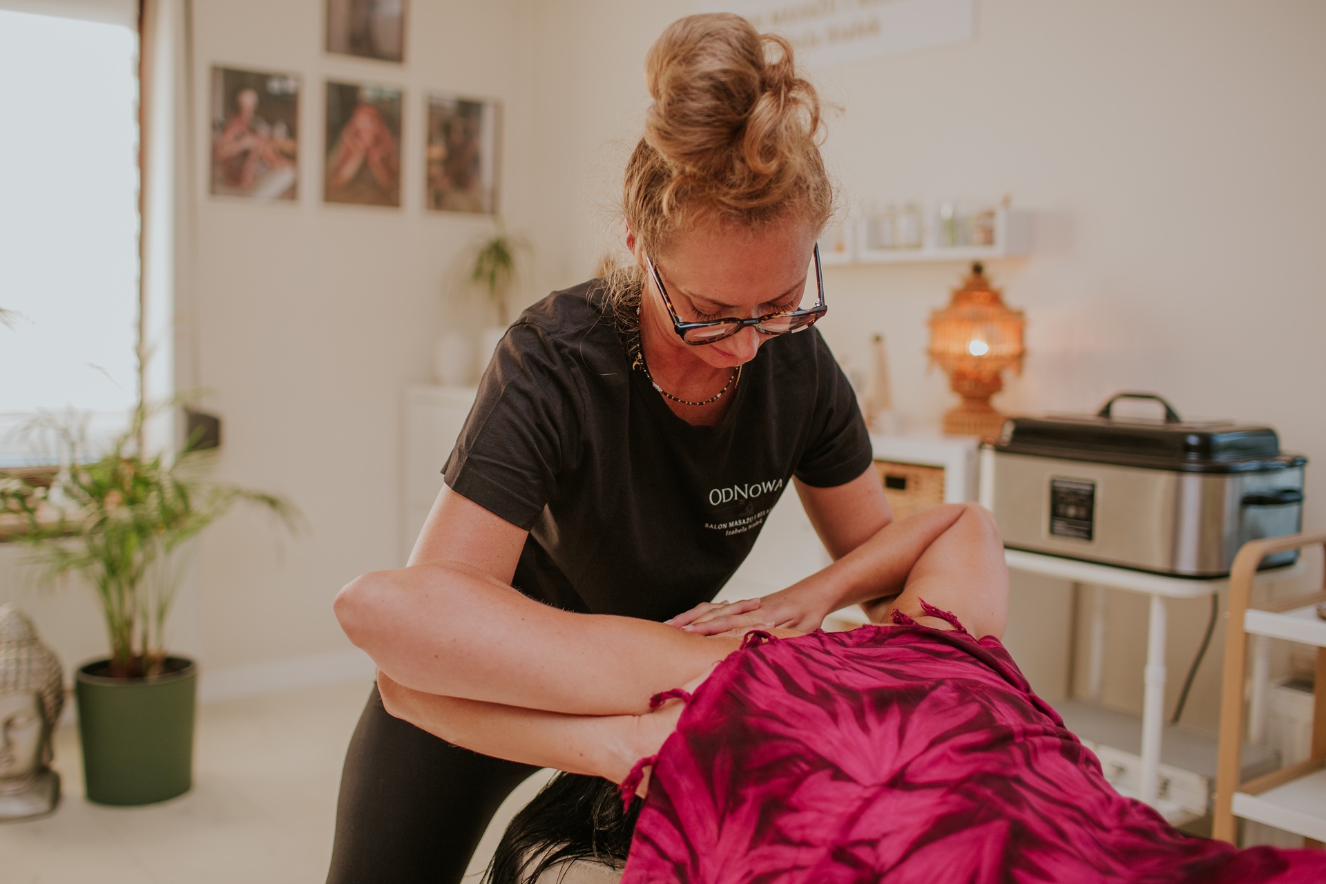 - praca ciężarem ciała masażysty