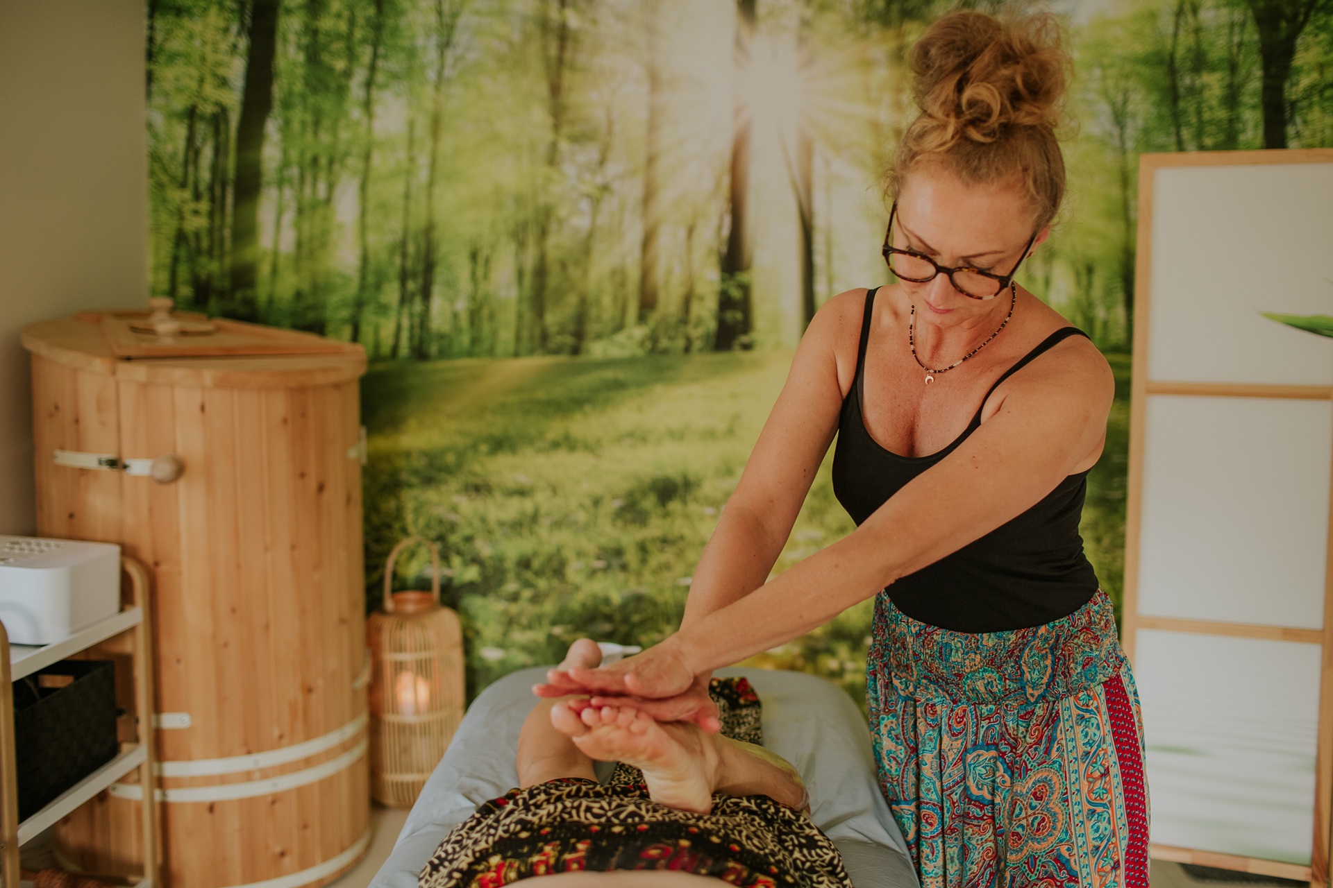- Redukcja objawów stresu, niepokoju i depresji – poprzez głęboki relaks i równoważenie energii.
